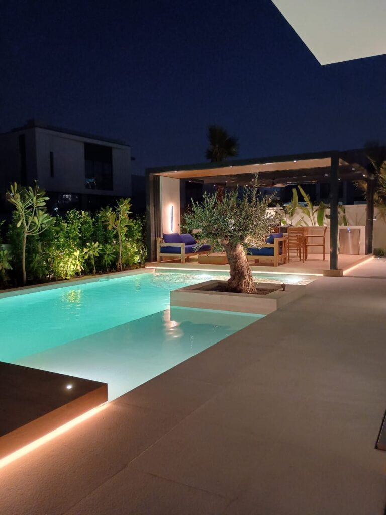Explore our portfolio of successfully completed projects. See our Dubai – pool, landscaping, interiors & MEP portfolio. We showcase work across Dubai and the UAE. This gallery highlights our expertise. We are a leading integrated landscaping and pool design & build firm. See examples of our bespoke swimming pool construction. View our stunning luxury landscaping. We feature precision interior fit-outs. Our portfolio includes managed MEP installations. Specifically, see our use of premium pool tiles and stone cladding. We demonstrate our advanced knowledge of irrigation systems. Each project reflects our commitment to excellence. Our team at Lushly Pools offers high-quality delivery every time. We transform complex visions into perfect, functional spaces. Furthermore, we highlight our long-term pool maintenance solutions. This ability covers all the Emirates.